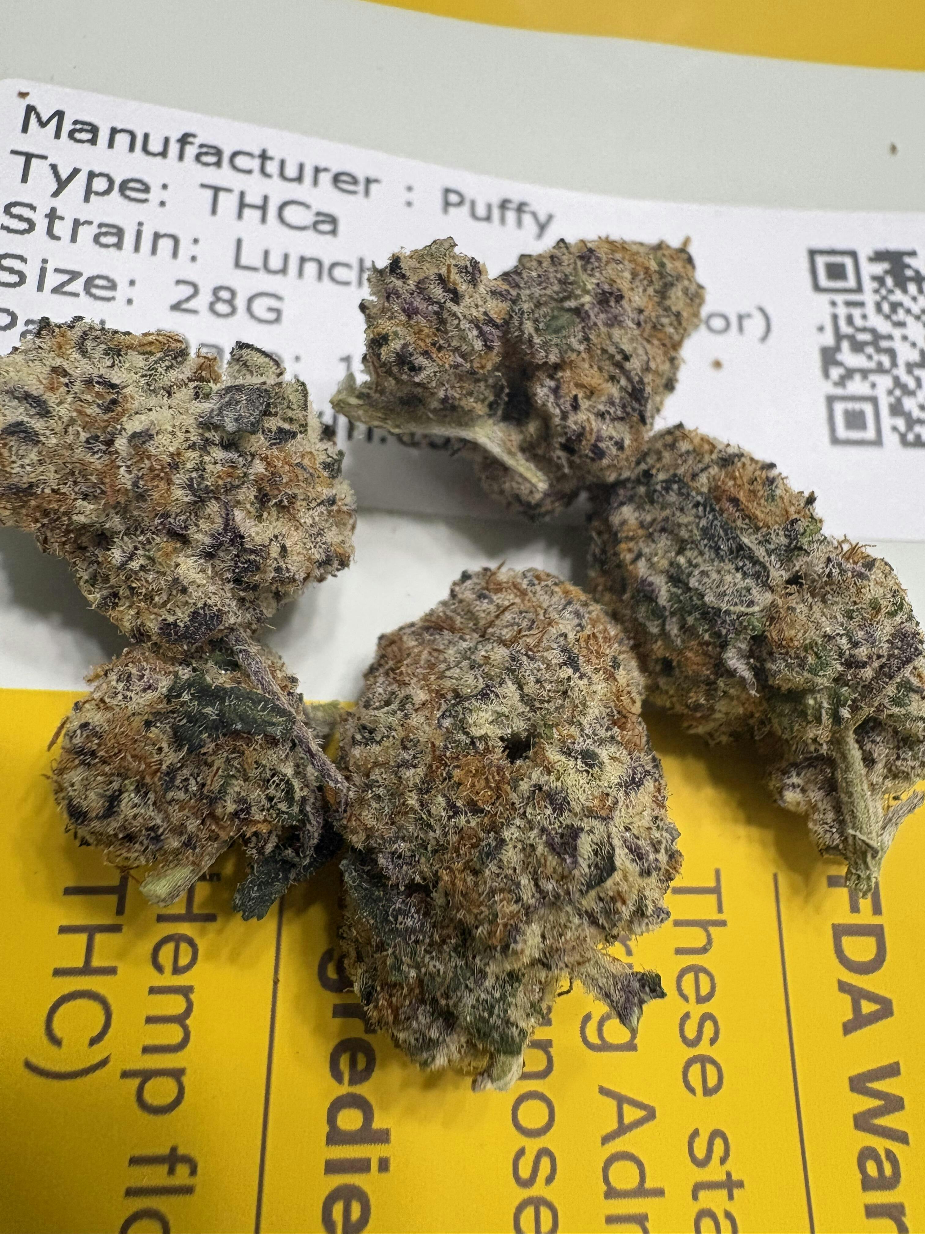 PUFFY Black Truffle is a premium indica-dominant hybrid THCa strain, born from the flavorful cross of Gelato 33 and Chocolate Kush. The aroma is a rich blend of earthy, sweet, and woody notes, with a deep musky undertone that lingers beautifully. Visually, the dense buds range from dark green to deep purple, coated in a thick layer of frosty trichomes and highlighted by bright orange hairs. Consumers often report a euphoric, uplifting mental buzz followed by deep body relaxation and a calming effect, making