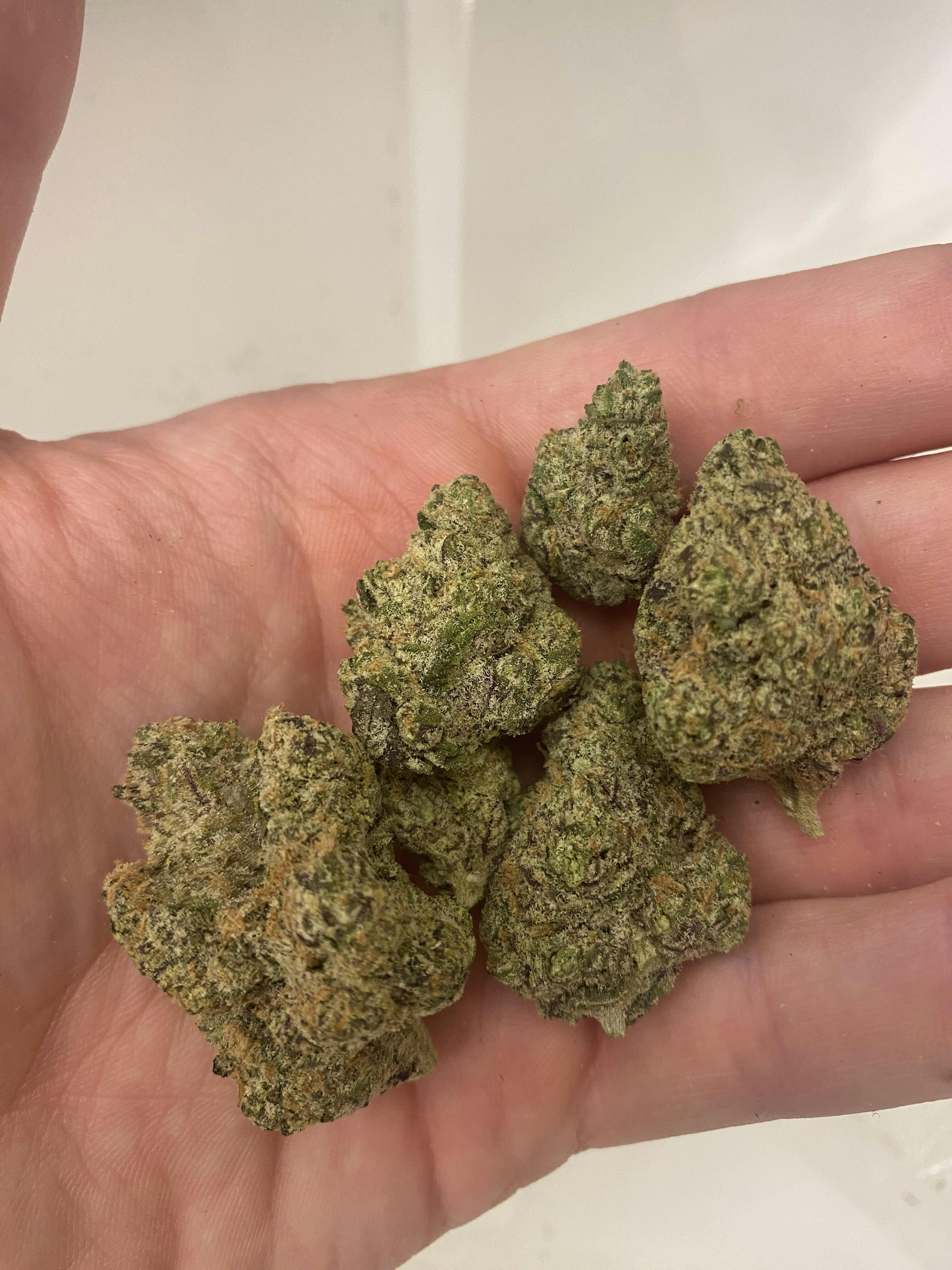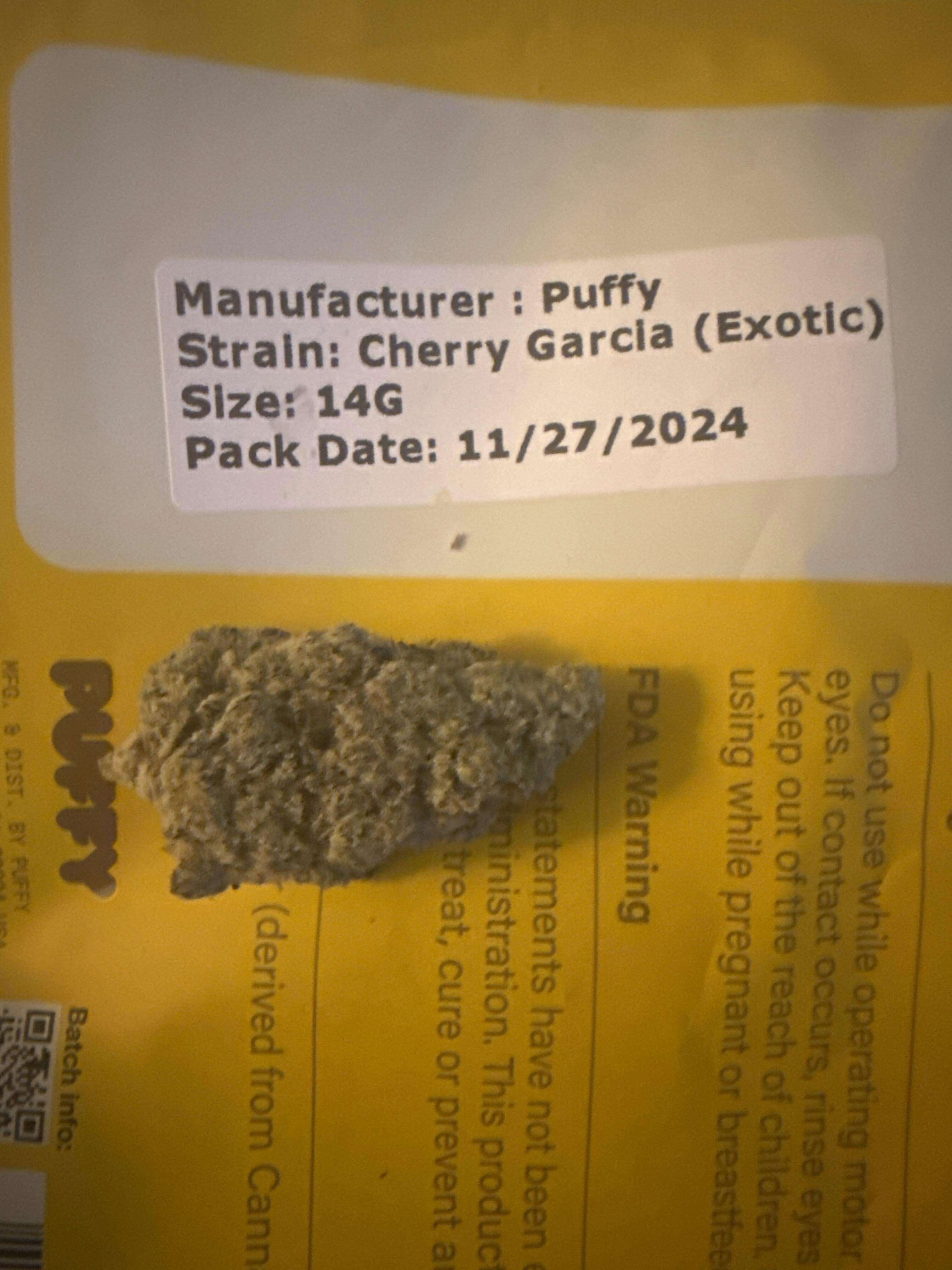 If you like blue dream, you'll like cherry garcia. Not a knock you out high but very pleasant and chilled. Nugs are light green and caked in trichomes. Lots of big nugs too.
