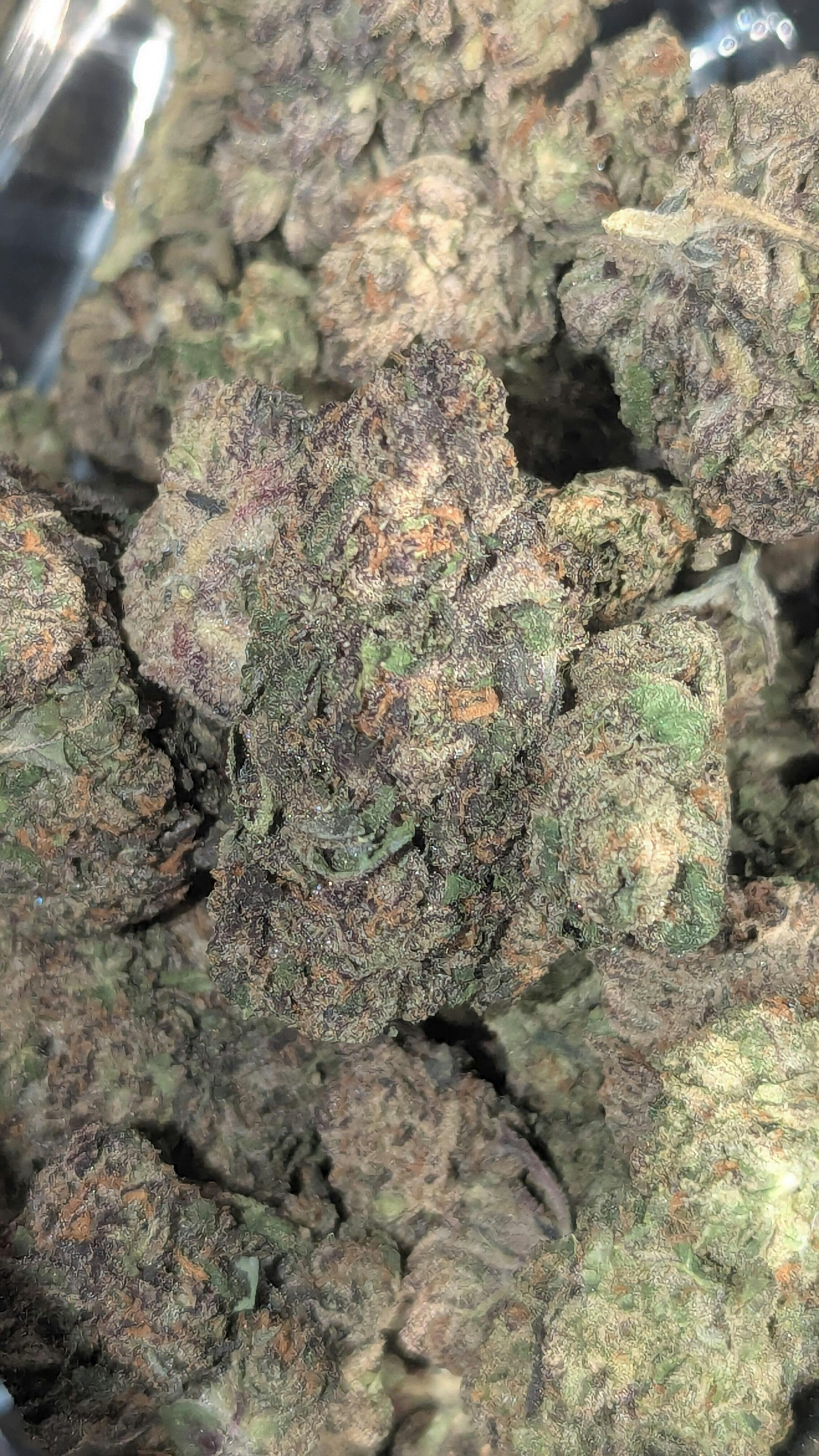 Buds really are full of beautiful orange colors. Smokes fruity and smooth but alttle harsh by the end.
