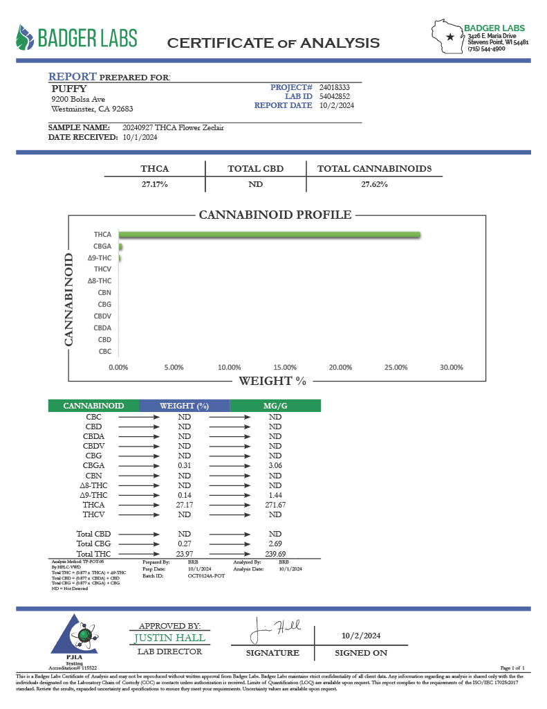 • Yes. Every batch is tested for THC/CBD potency, and terpene profile. You’ll find a link to the lab report on every product page.